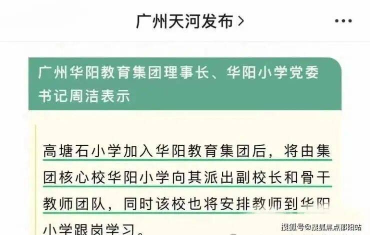 天河政府官微已在去年官宣该校加入华阳教育集团,并由原华阳小学向其派出副校长和骨干教师团队进驻,相当于拥有纯净“华阳系”血统。