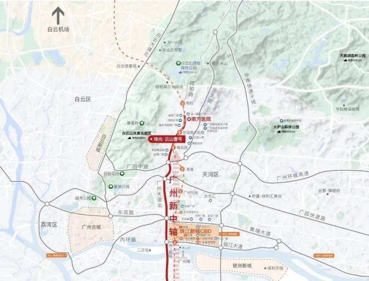 项目雄踞广州千年历史名山、国家级5A风景区-白云山主峰东麓,紧挨荷树林登山口,生态资源不可复得。云山东麓定位为生态宜居新城区,相比西麓更近天河,显现出“以东为贵”的姿态。
