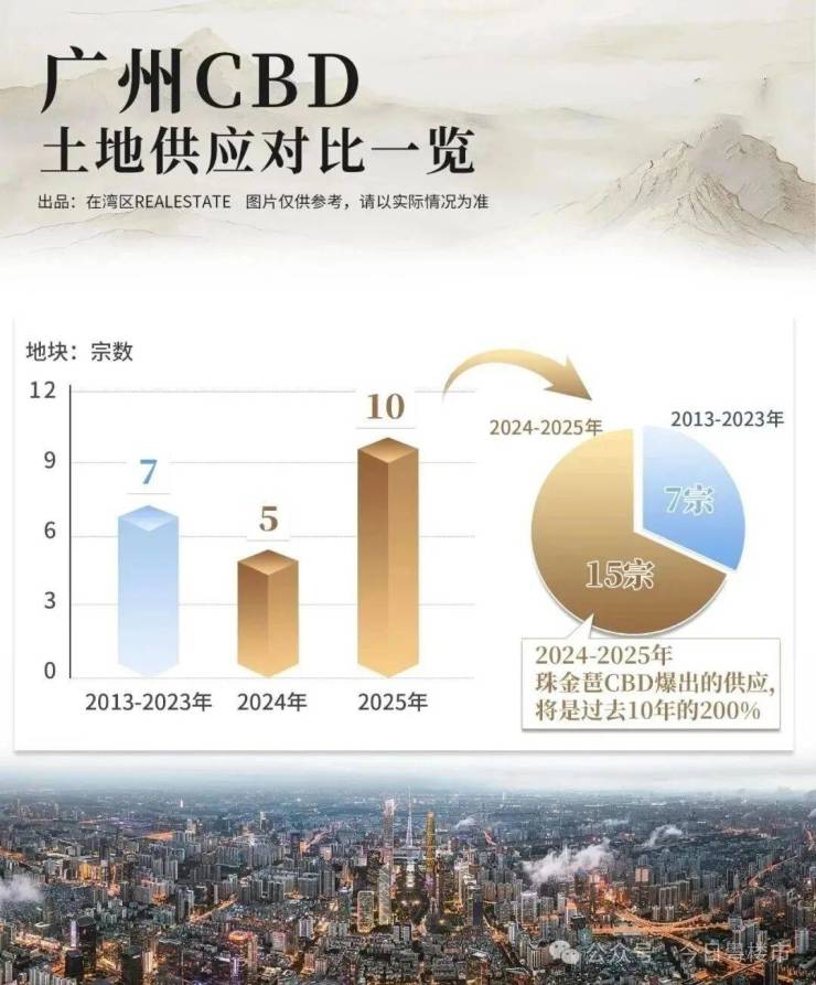 若再算上2025年将供应地块,还有4宗金融城地块,6宗琶洲地块。短短2年时间,珠金琶CBD爆出的供应,将是过去10年的200%!