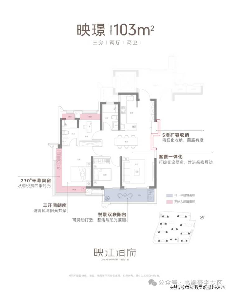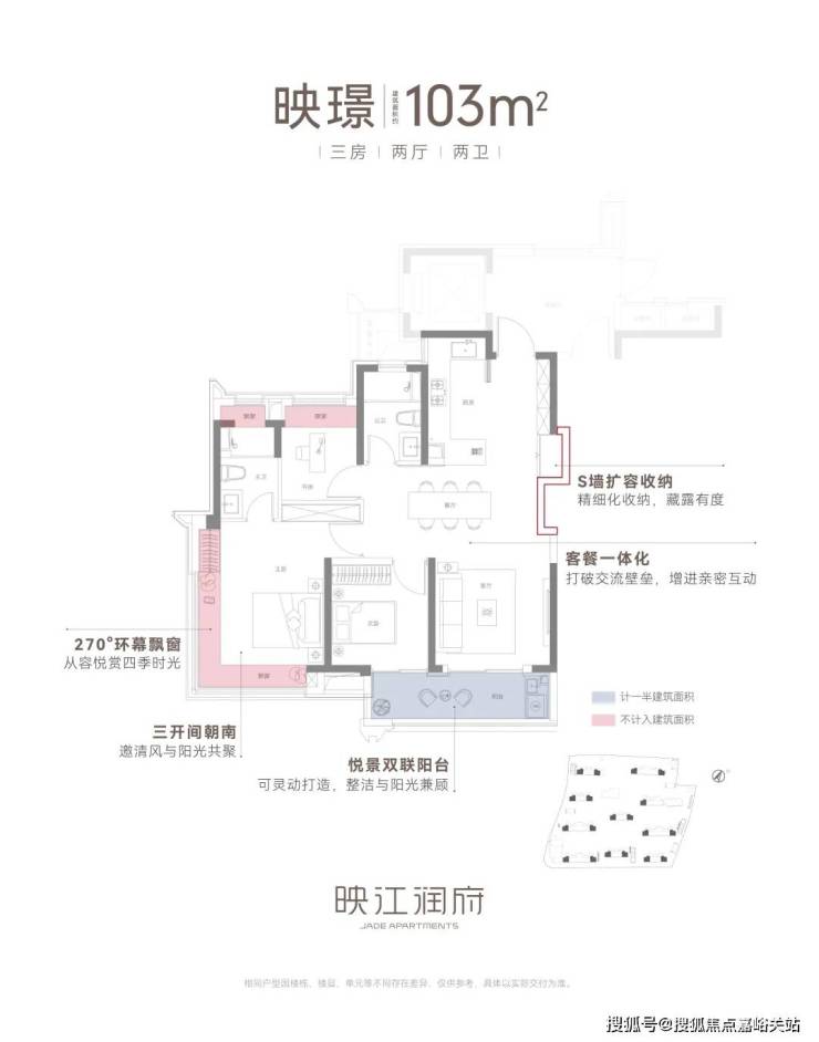 ②建面约103㎡3房2卫边套:品质改善的爆款户型,270°环幕飘窗!