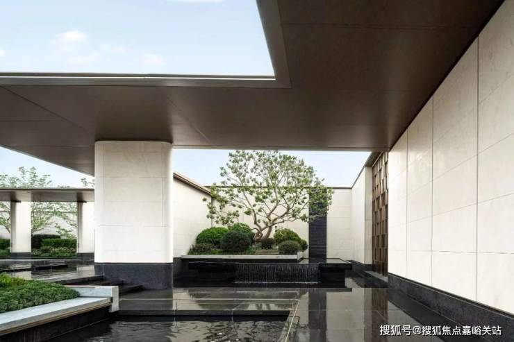 · 四重隐境水院:风雅会客厅出来经过风雨连廊区连接的就是项目售楼处,经过风雨连廊区的时候会看到项目打造的 约650平米纯净自然的水域界面,楼台与水瀑交融,享受回家的仪式感。 通透的艺术廊道,彰显了以人为本的设计理念,既能遮风挡雨,也可以从容漫步,整个无界水院采用了水系堆叠,层层变换,错落有致,美不胜收!