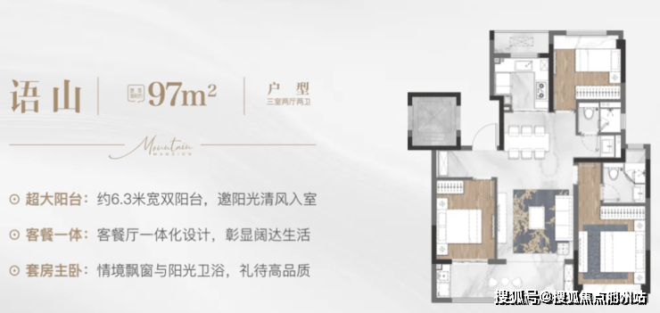 A语山:97㎡三房两厅两卫: