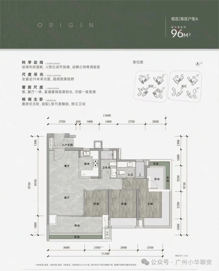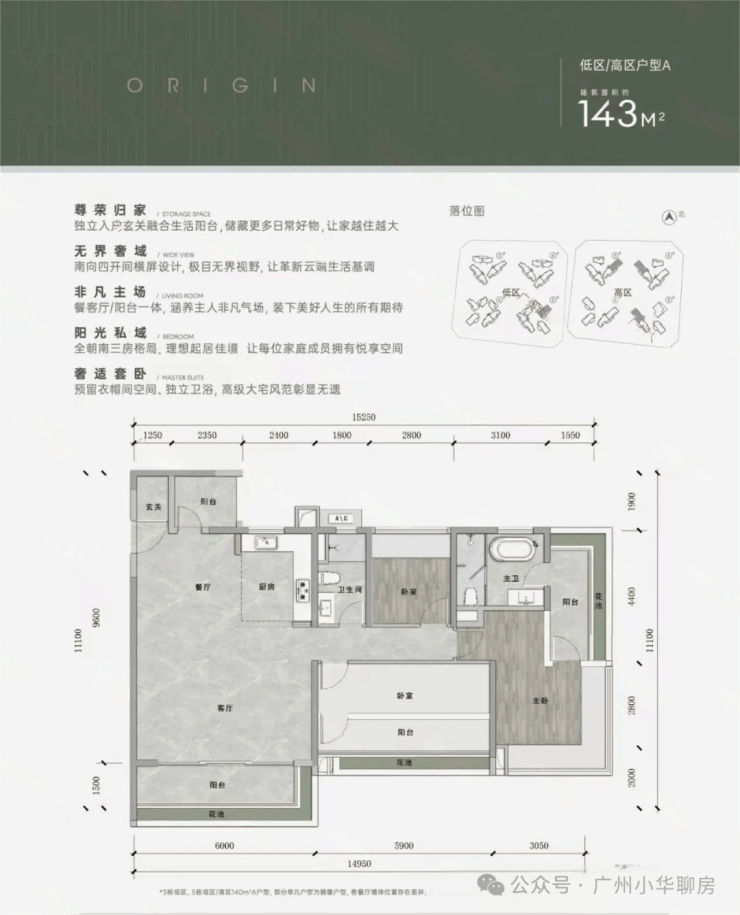 低区以小户型为主,高区多是大户型,居住舒适度会更佳。