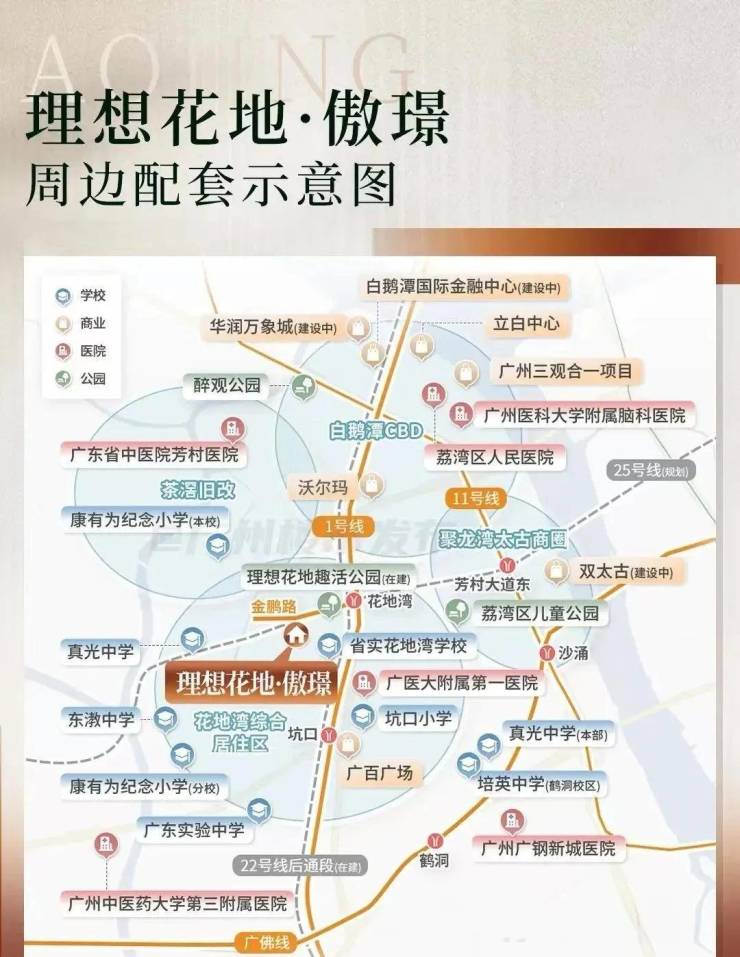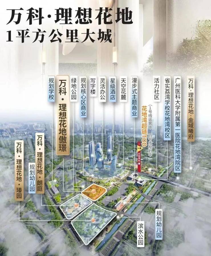 万科理想花地傲璟,可以说是位于心脏地段的核心位置。