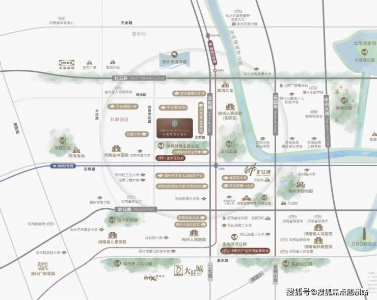 向南600米是东风路,很多老郑州人都了解这是一条富贵线。这里汇集了郑州第一批数码3C隐形富豪,还有金水区政府、省中医等城市地标,东风路蕴藏了大量高端购买力。