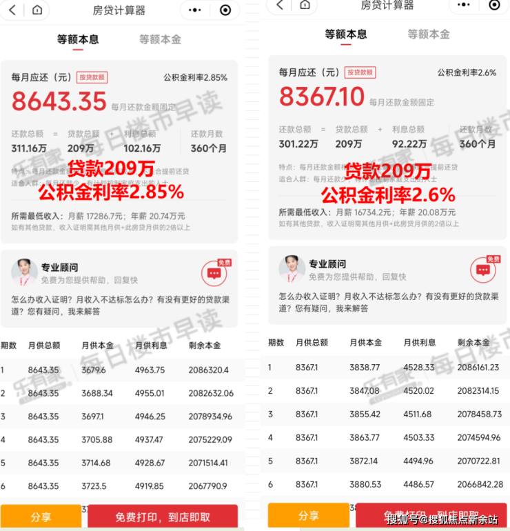 若以首套二孩,纯公积金贷款209万,等额本息还款方式计算,新政后可累