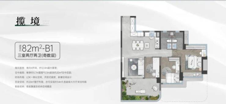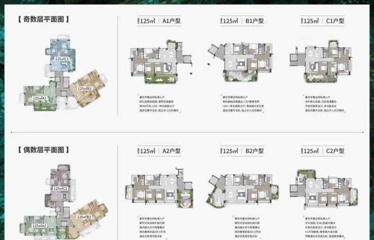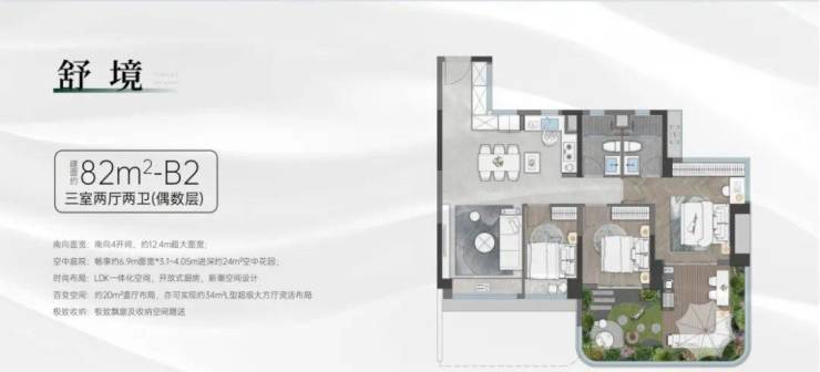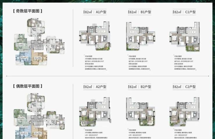 【户型面积】:82㎡-110㎡-125㎡三至四房