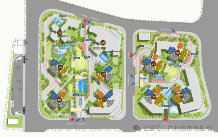 项目北侧有流溪河生态湿地公园、西侧有黄金围东区公园、南侧有白云湖,也算是绿色生态环抱,宜业宜家。