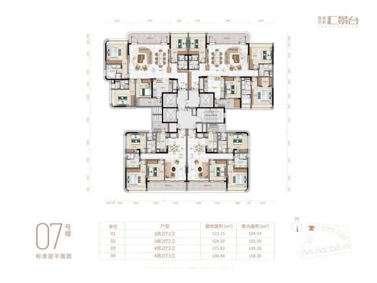 01👉123.15方四房三卫 套内104.54方