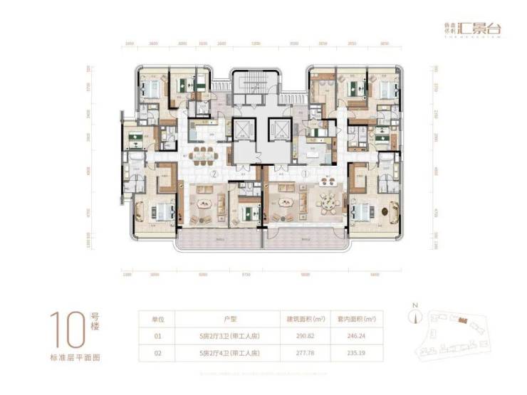 01👉290.82方四房三卫 套内246.24方