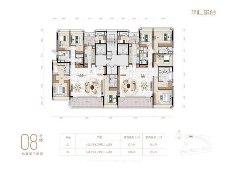 01👉237.64方四房三卫 套内201.73方