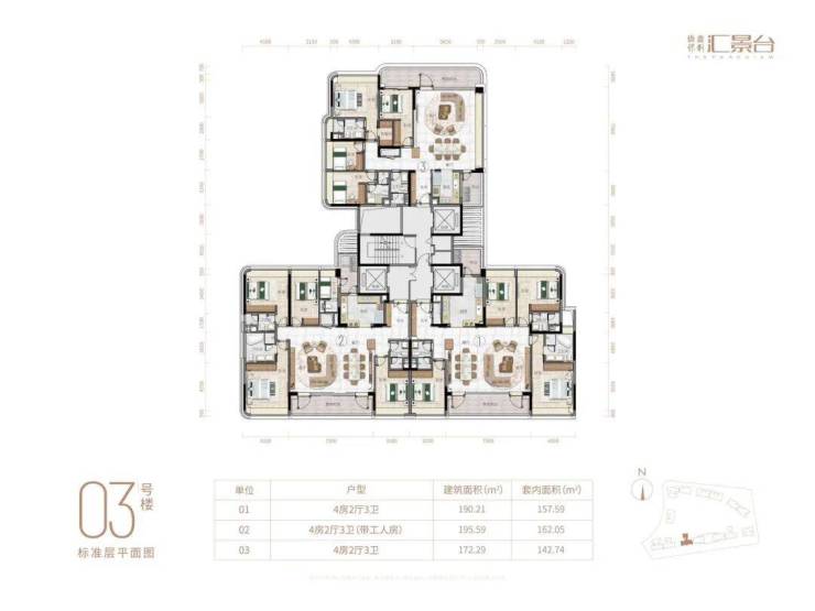 02👉190.21方四房三卫 套内157.59方