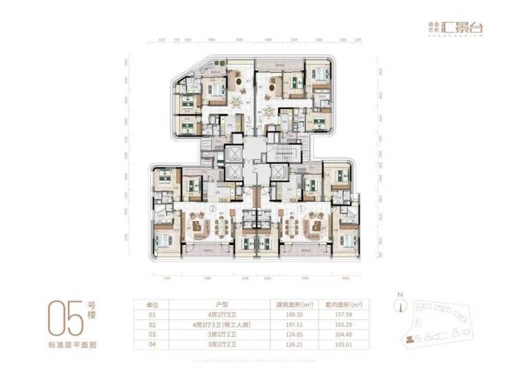 02👉197.51方四房三卫 套内165.29方