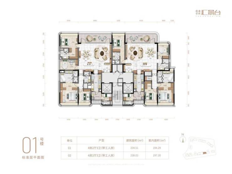 01👉234.51方四房三卫 套内194.29方