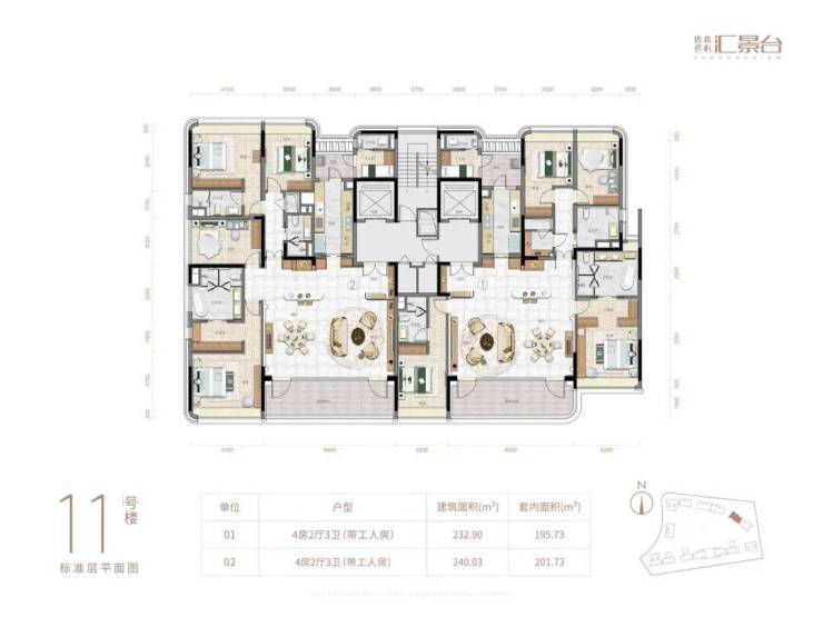 01👉232.90方四房三卫 套内195.73方