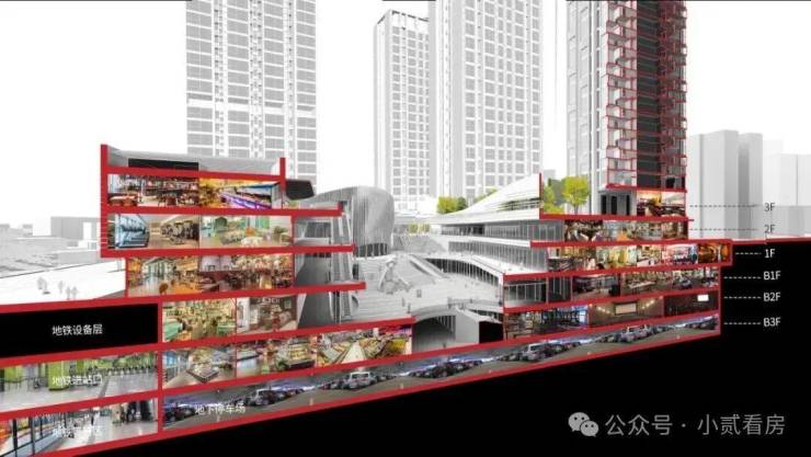 罕见开放式商业综合体,地下三层商业MALL接驳双地铁,地上三层公园购物街区。