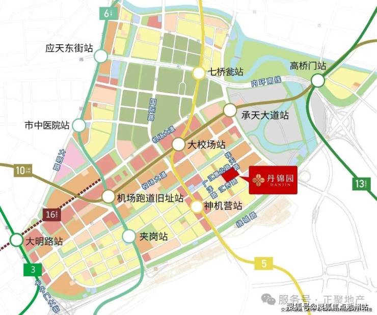 •便捷交通:片区内规划6线地铁,直线距离5号线神机营站约600米、在建10号线二期大校场站约650米;内部通过国际路和承天大道、校场大道连接应天高架、绕城公路、大明路、软件大道、卡子门大街等,快速通达全城。