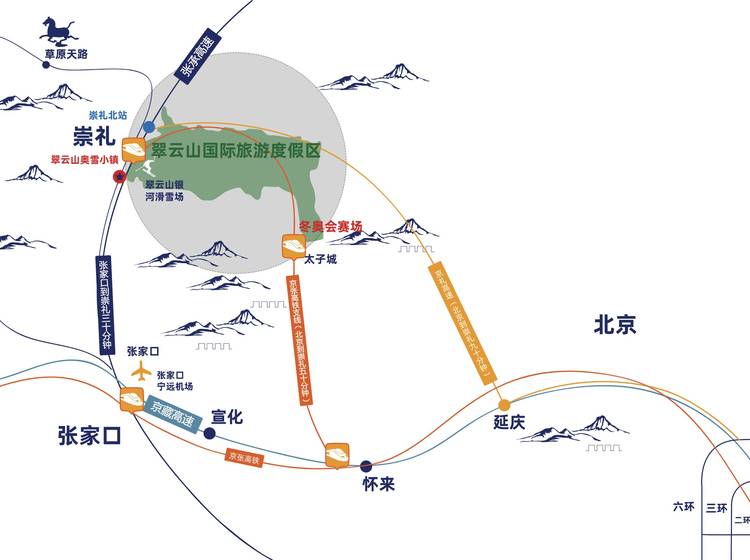 (2)新修京张高铁全长170公里,中间一条线路京张城铁下花园直达崇礼北站,与我们的我们项目仅距离1公里属于城铁辐射圈内。
