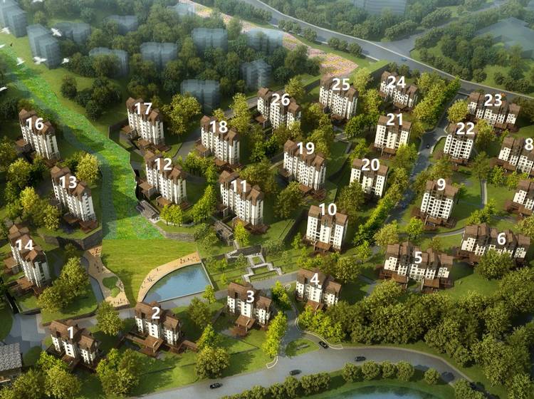 园林配套:翠云山森林风景区、50000㎡人工湖、健步道