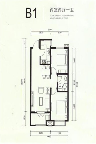 2室2厅1卫-B1户型