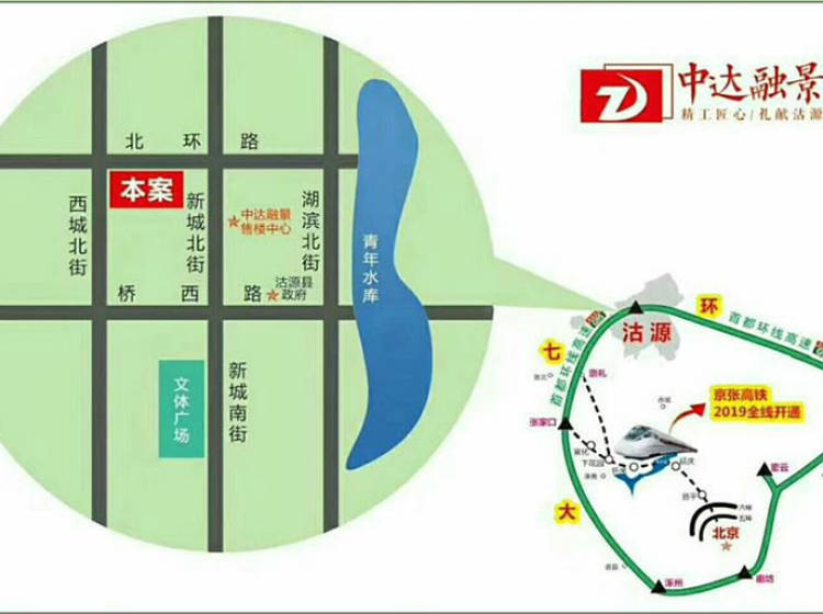 金源广场、明洋宾馆、公园、绿地、第五小学校、第三中学、河北农村信用社、沽源县医院