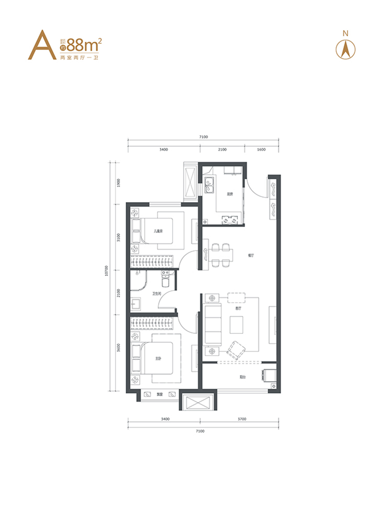 2室2厅1卫-A户型