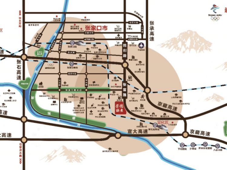 紧邻张宣公路,向北直达张家口城区,向南通往宣化区城区,交通便利,距离张家口高铁站、宣化高铁站均10公里,区位条件优越。
