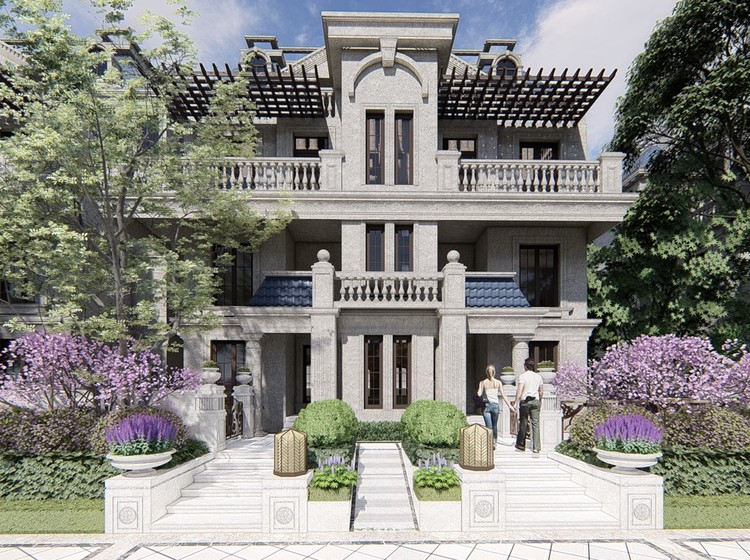 御河府项目由清华大学建筑设计研究院设计,以6层叠拼、4层双拼及联排别墅、类独栋别墅组成。小区整体建筑风格采用精典法式巴洛克建筑风格,经典与时尚共存,体现精致、优雅的生活方式,营造浪漫、奢华、色彩丰富但却合理舒适的居住体验,在整体法式氛围的基础上,追求近人尺度细腻温馨,经久耐看,塑造尊享品质大宅。小区内设有独立高档会所,建筑面积达9000多平米,由精品超市、私人泳池、健身会馆、精品中西式餐饮、社区医务站、老年活动中心、老人日间照顾中心、和文化活动中心、社区综合服务站等服务设施组成。紧邻会所南边是4000多平米的独立幼儿园,幼儿园中孩子们的活动设施及活动场地一应俱全。小区环境也非常有特色,经典法式设计重点打造入口中轴线及住宅之间的景观共享空间,形成超大尺度的“一带一轴一核心”。在景观设计上以空间为主导,景观与建筑物相协调,种植精美植被,设置喷泉景观,结合微地形设计,一步一景,创造层次分明的开放空间景观系统,中心景观带的设计风格呼应法式建筑的氛围,通过植物精致小品及水系,打造休闲放松富有灵动生命气息的生活体验。典雅型风格使居住者情感回归于宁静与自然,设计中始终以“人居”为基础点,追求居住的舒适度与品位,将以人为本,科学居住,健康生活贯穿设计的全过程。