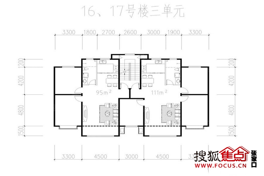 2室2厅1卫-16、17号楼三单元95—111㎡