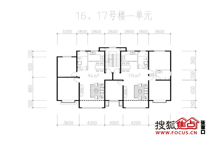 2室2厅1卫-16、17号楼一单元94—115㎡