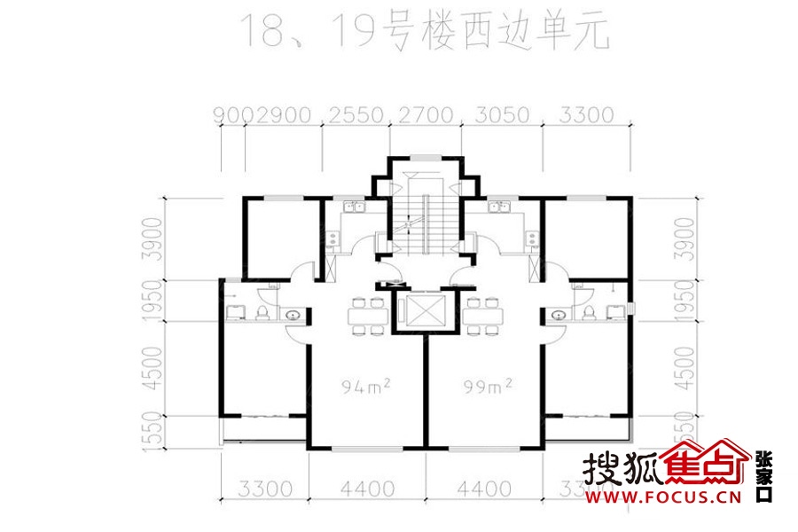 2室2厅1卫-18、19号楼东边单元94—99㎡