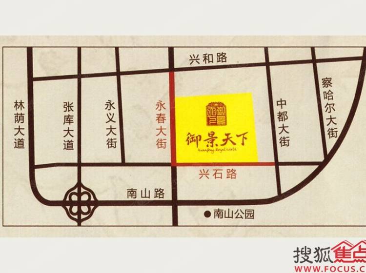 南山公园,万人商厦,汽车总站,张北一中,张北第四中学,新盛小学,九卜树小学,多个幼儿园,民政局,四大银行,17.5电影院,中都博物馆,仁爱医院,成龙健身中心等
