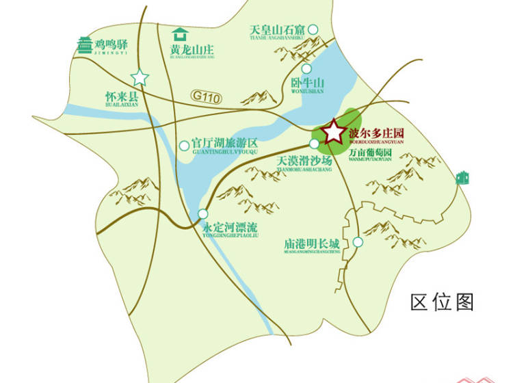 波尔多庄园坐落于京北怀来,距北三环马甸约86公里,70分钟车程,八达岭高速西康路出口直通项目。