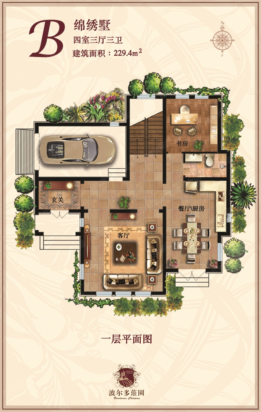 3室2厅3卫-波尔多庄园A一层三室两厅三卫