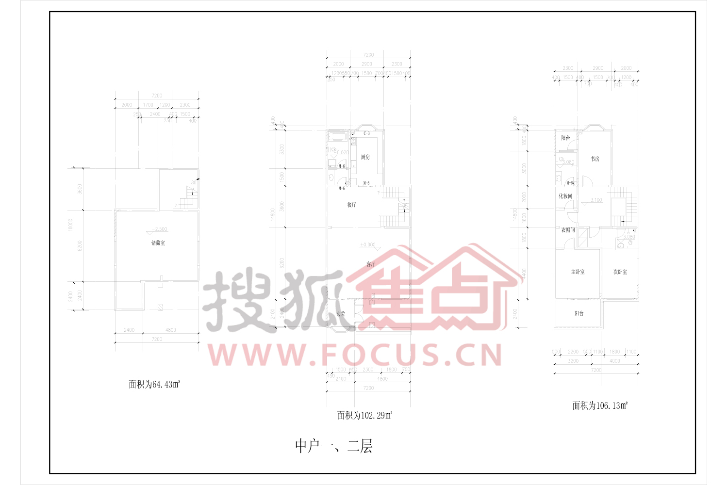 3室2厅3卫-海棠花溪中户1-2层叠拼户型图