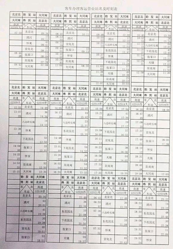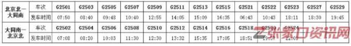 注:文中大同至北京的高铁列车时刻表来自网络,具体时间请以实际官方公布时刻表为准。