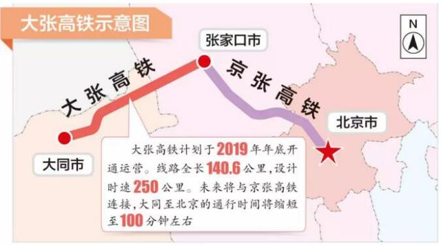 ▲大同至北京的高铁路线示意图