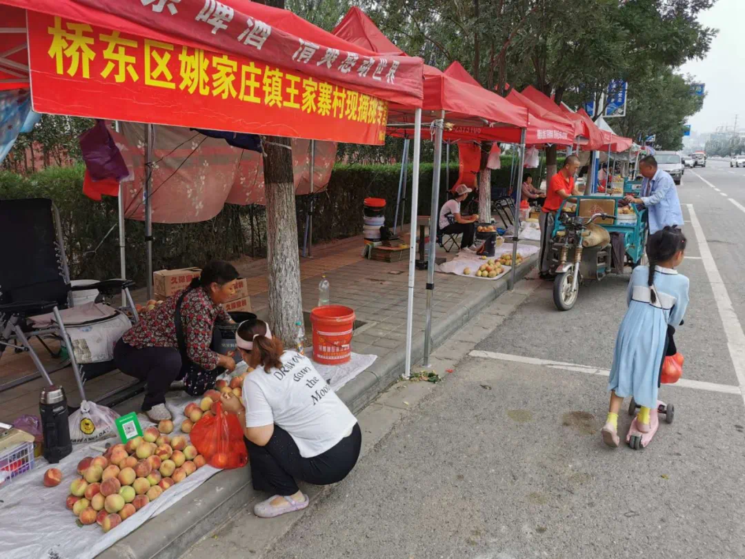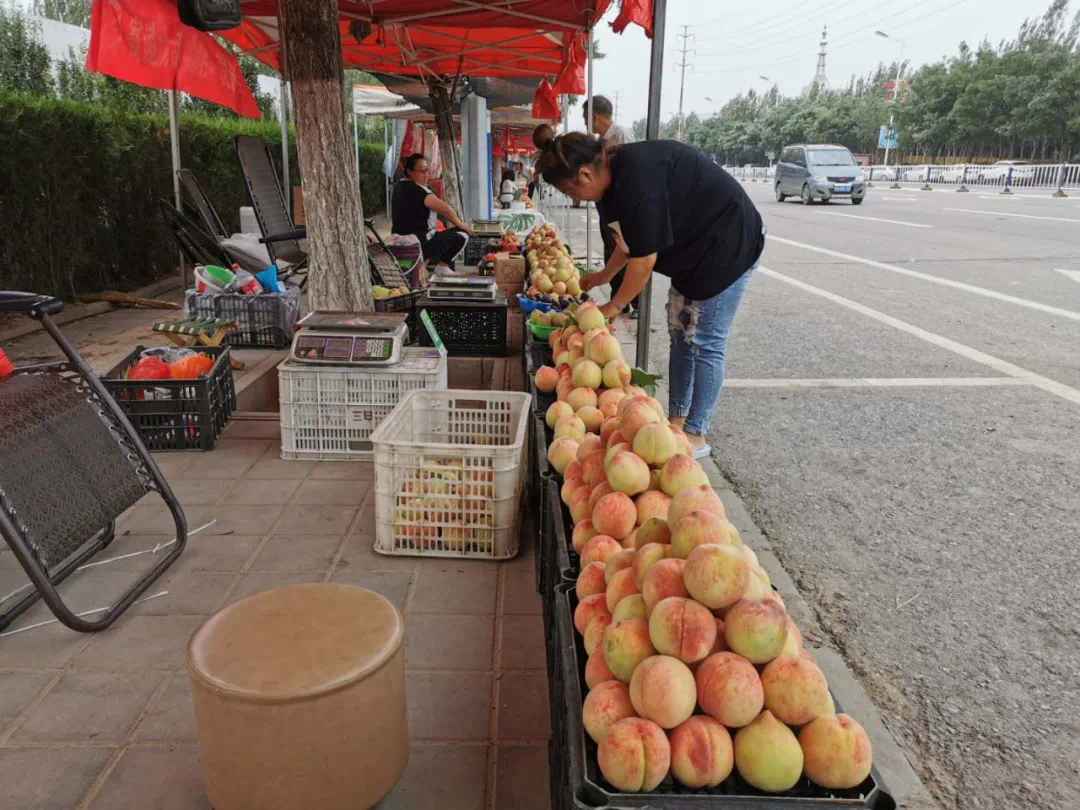 8月12日上午,桥东区姚家庄镇王家寨村的千亩桃林里果实累累、久保飘香,四面八方的客人到桃林或村边的摊位采摘、购买鲜桃。