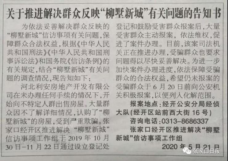 柳树屯作为张家口有名的城中村,其烂尾项目柳墅新城项目可为也是人尽皆知,属于张家口市重点“城中村”改造项目。自2013年由河北利安房地产开发有限公司开发建设,但迟迟不开工。于是不少业主走上维权之路,之后2018年传出退房退款手续,更有按已交认购金加倍退款之说。2019年又传出成本价安置房登记安置的消息,到如今事情的真相也犹如车水马龙中的这一片狼藉似的拨不开迷雾。
