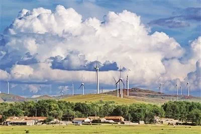风力发电最节能,风车竖立如林海。