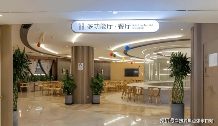 居住空间采光通风与隐私保护:单人间面积达30-50平方米,南北通透布局让阳光自由流淌,独立阳台可供晾晒衣物或观景休憩;双人间通过共享客厅设计促进邻里互动,多人间以可调节隔断实现空间灵活分割,兼顾社交需求与个人隐私。所有房间均配备独立卫浴、智能温控系统及适老化家具,床头屏实时显示护理计划,电动护理床可根据需求调节角度,部分房型设置景观阳台,引入自然光的同时通过湿度控制系统维持50%-60%的舒适区间。