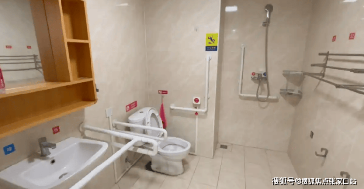 全院公共区域采用防滑地胶、双侧扶手、无高差设计,医用电梯直达各楼层,卫生间配备坐浴椅、安全扶手,公共区域覆盖AI摄像头,智能床垫实时监测离床状态,全方位保障长者安全。