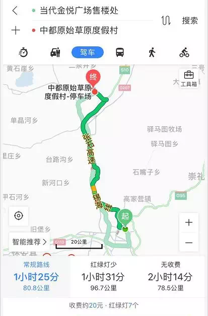 自当代金悦广场出发,途经锡海线、张石高速,约1个半小时,可至张北音乐节现场。
