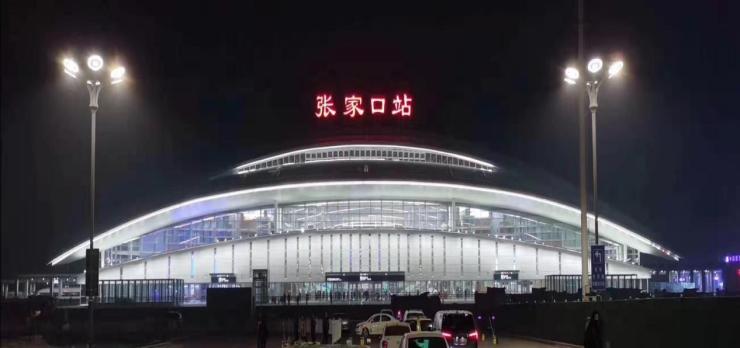 京张高铁终点站张家口站,坐落于张家口市主城区以南,张家口南站旧址。车站正立面的曲线呼应张家口著名地标大境门,车站整体造型中融入“人”字形意向,表达对百年京张的敬意。进站大厅和综合服务中心墙面的浮雕,体现高铁、长城、植物等众多元素,寓意中国铁路发展无限的可能性,表现茶马古道和塞北风光。
