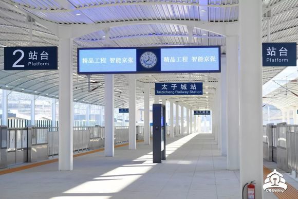 这座高铁站正位于官厅水库旁,直线距离仅1公里。车站在2号站台特别开设观景廊道,让旅客能一览官厅水库无敌水景。