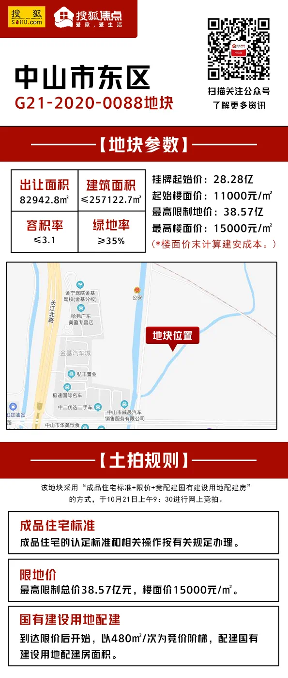 1、起拍楼面价11000元/平,创下东区有史以来较高的起始价。如果地块以底价成交,该楼面价将取代君华,进入中山楼面地价TOP10排名。