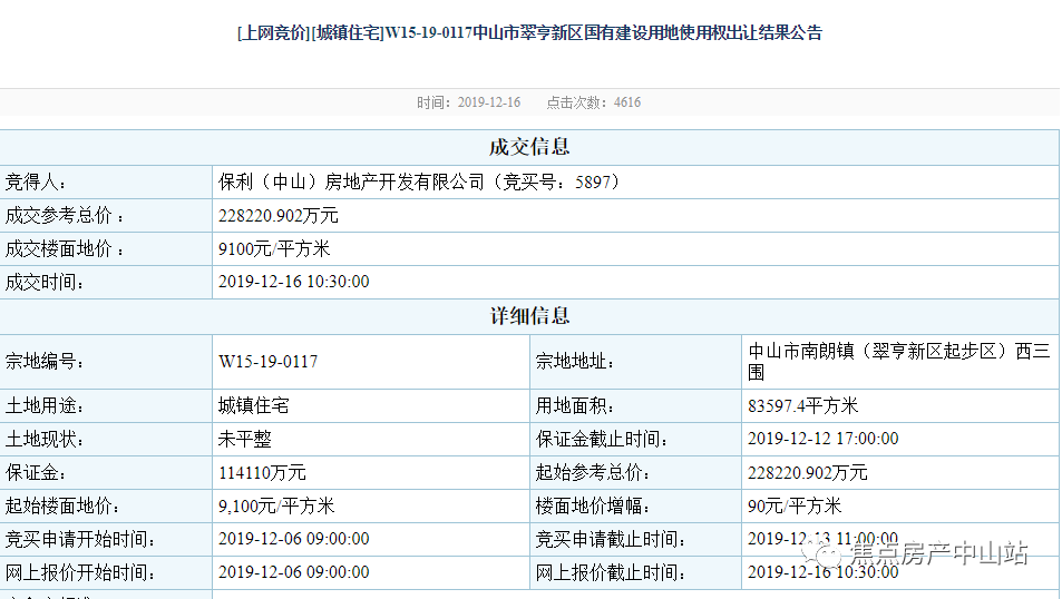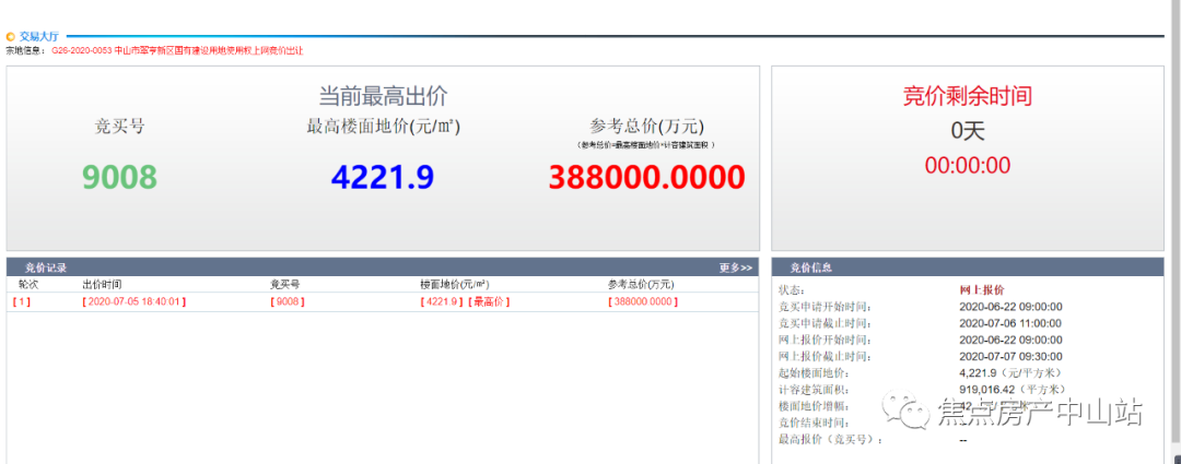 一轮竞价!由雅居乐以总价38.8亿,拿下翠亨新区起步区西四围土地总面积24.5万平(折合368.3亩)宗地,楼面价为4221.9元/平。