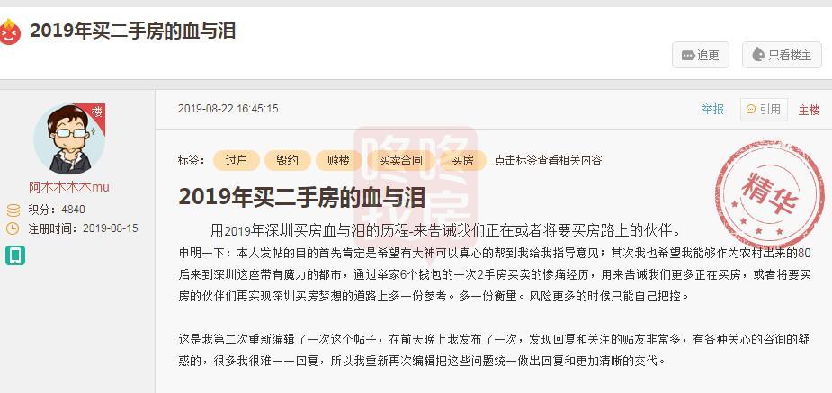 这两天,家在网友@阿木木木木mu的《2019年买二手房的血与泪》的帖子被网友极其关注,看完他的“买房血泪历程”,不由让人胆战心惊。