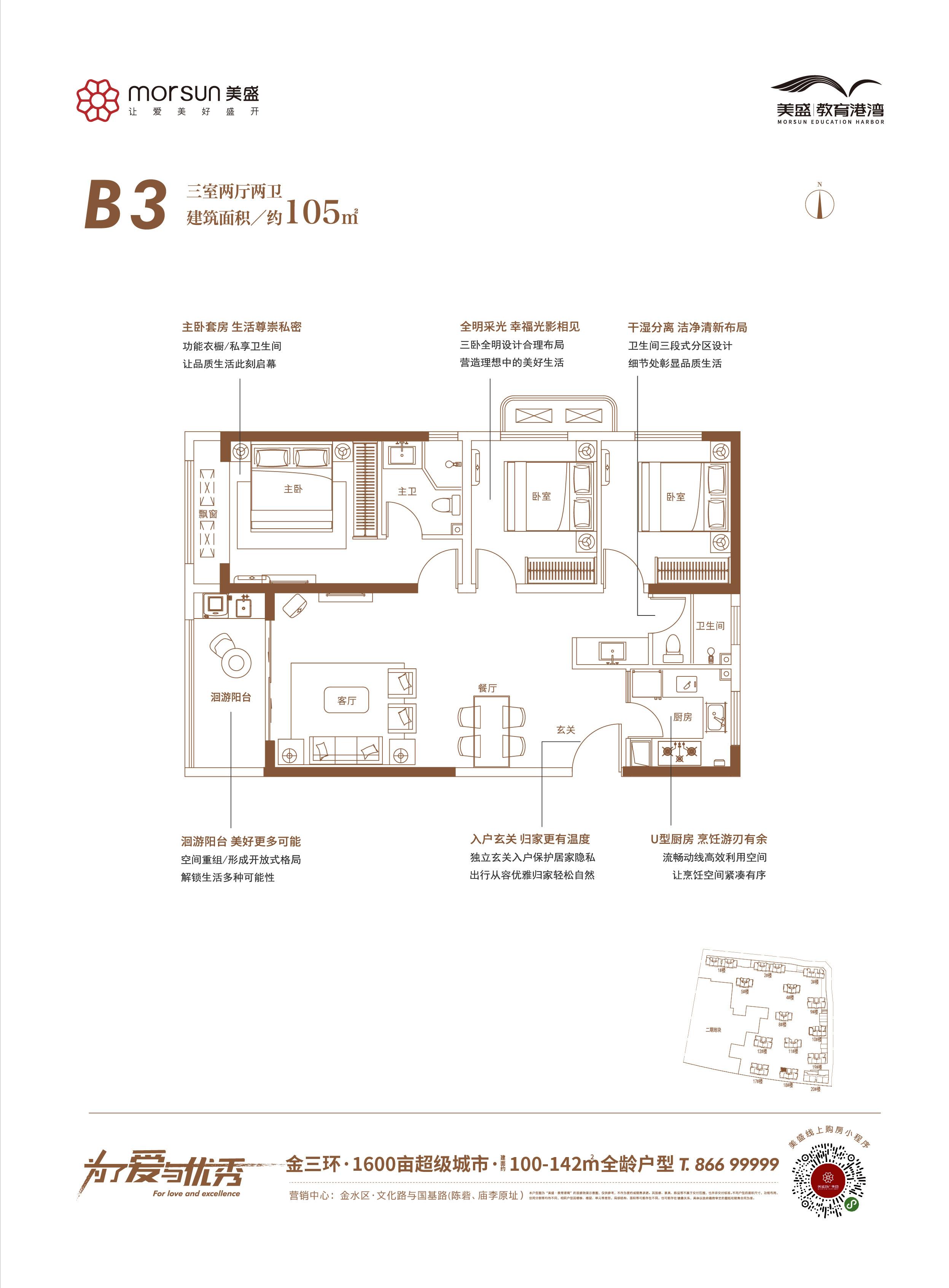 在售 户型方正 全明格局 客厅朝南 带衣帽间 主卧带卫
