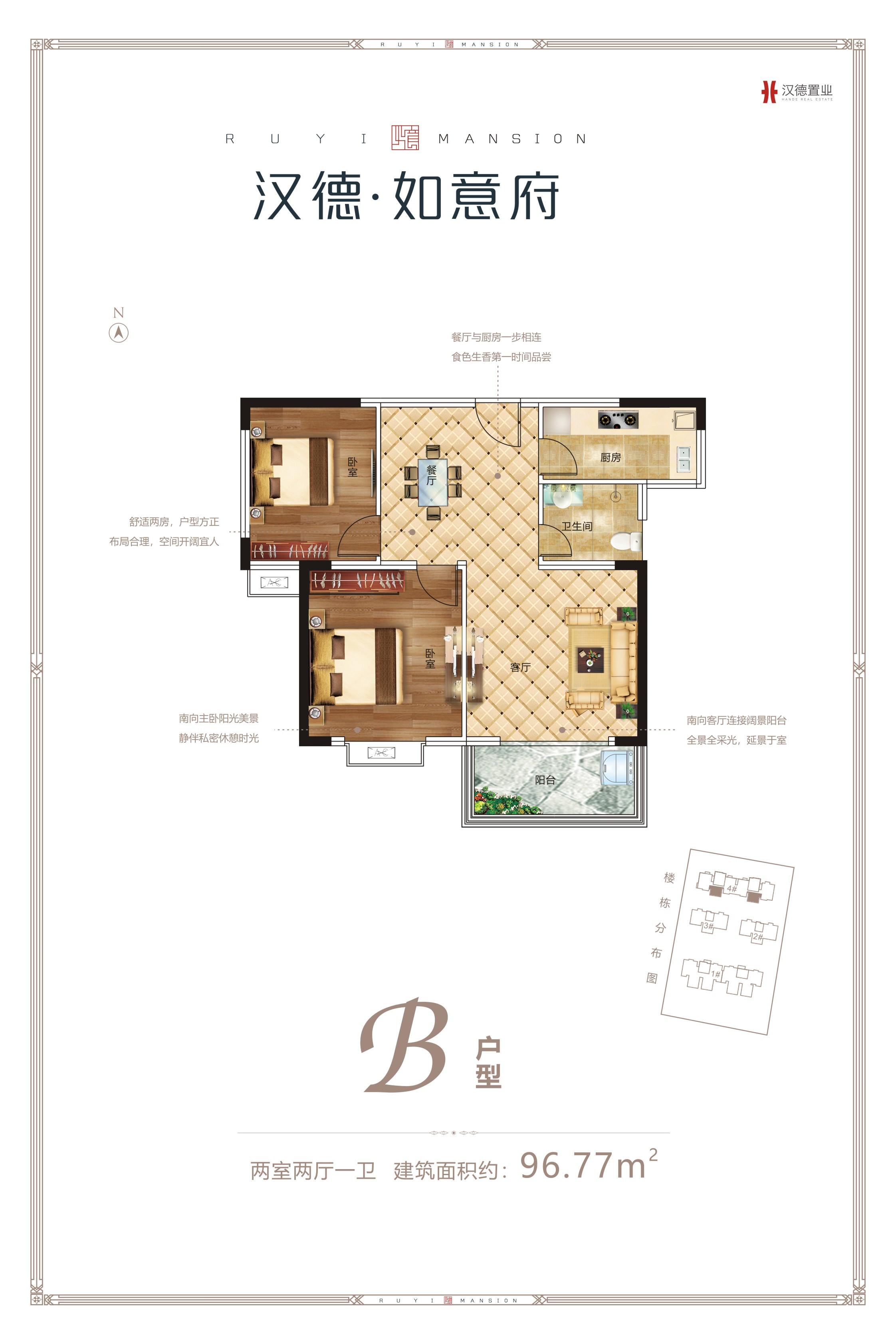 2室2厅1卫-B户型-96.77㎡